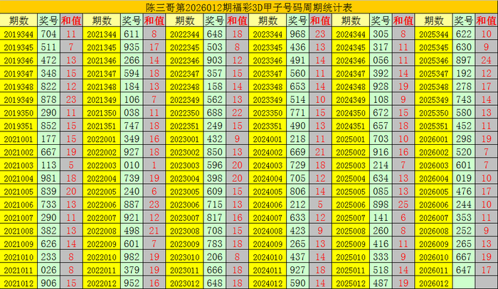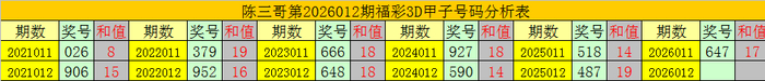 福利彩票3D开奖成果:奖号647。 奖号样式开出:大小大、合合质、偶偶奇、011路,和值17,跨度3。 陈三哥3D第2026012期甲子号分析: