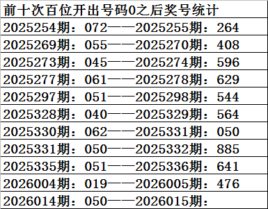 四、个位分析:上期开出号码0,前10次号码0出现之后下期同位号码为:7994456721,其中号码大小比为6:4,基本相等;奇偶比为6:4,基本特别;012路比为3:5:2,0路号码走温。本期参考号码:3。