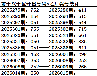 三、十位分析:上期开出号码5,前10次号码5出现之后下期同位号码为:1141684956,其中号码大小比为5:5,特别;奇偶比为5:5,特别;012路比为3:5:2,1路号码认知相等活跃。本期参考号码:1。
